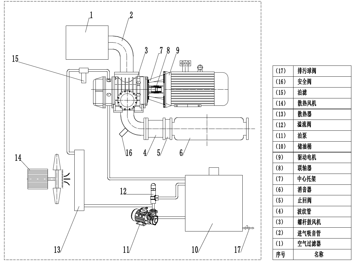 (薩震永磁變頻無油螺桿鼓風機流程圖)
