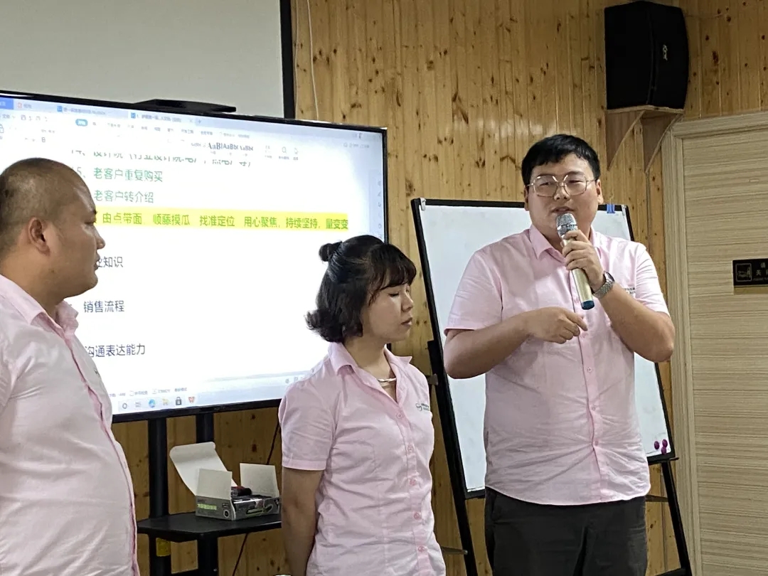 接下來(lái),我們將跟隨總經(jīng)理程總來(lái)進(jìn)入正式的培訓(xùn)課堂,程總利用三天的時(shí)間,為我們的學(xué)員生動(dòng)形象的講解了企業(yè)文化;公司戰(zhàn)略;銷售板塊以及銷售通關(guān)考試等內(nèi)容,學(xué)員們也都積極有活力的參與其中,敢想敢說(shuō)的發(fā)言表達(dá)自己的看法,并且認(rèn)真的記好了筆記。