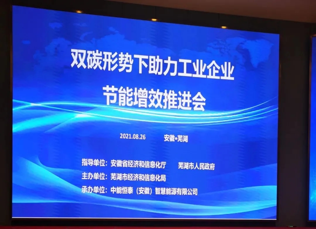 2021年8月26日14:00--18:00,程總受邀參加由安徽省經(jīng)濟(jì)和信息化廳、蕪湖市人民政府為指導(dǎo)單位,蕪湖市經(jīng)濟(jì)和信息化局為主辦單位,中能恒泰(安徽)智慧能源有限公司為承辦方在蘇寧環(huán)球大酒店舉辦的“雙碳形勢下助力工業(yè)企業(yè)節(jié)能增效”推進(jìn)會(huì),進(jìn)行交流。