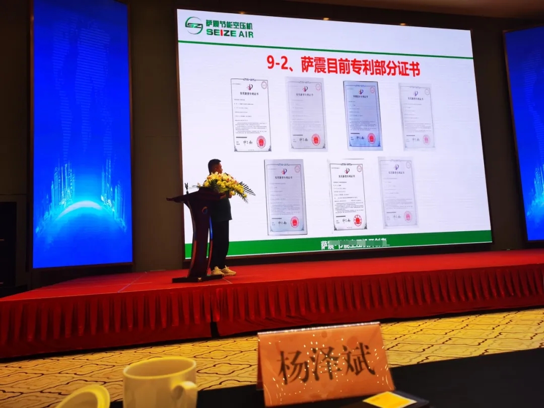 還有薩震壓縮機(jī)(上海)有限公司華中大區(qū)的副總監(jiān)楊澤斌,在臺(tái)上講解了“空壓機(jī)技術(shù)與產(chǎn)品的應(yīng)用案例”,以實(shí)際的應(yīng)用情況來向大家展示了薩震產(chǎn)品的高效節(jié)能、環(huán)保。