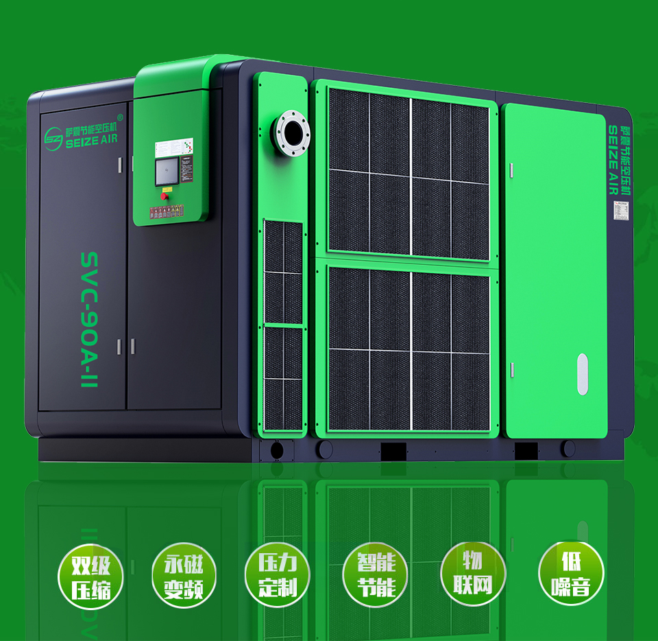 采用薩震空壓機(jī)主機(jī),無振動(dòng),低噪音,大轉(zhuǎn)子,低轉(zhuǎn)速,強(qiáng)大的心臟決定了整機(jī)的優(yōu)異性能。轉(zhuǎn)子經(jīng)嚴(yán)格的動(dòng), 靜平衡試驗(yàn), 使其運(yùn)轉(zhuǎn)平衡更好, 振動(dòng)更小, 噪聲更低,同時(shí)在直徑不變的情況下,轉(zhuǎn)子長度增加,有效壓縮面積增加,從而達(dá)到流量增加,功耗降低。